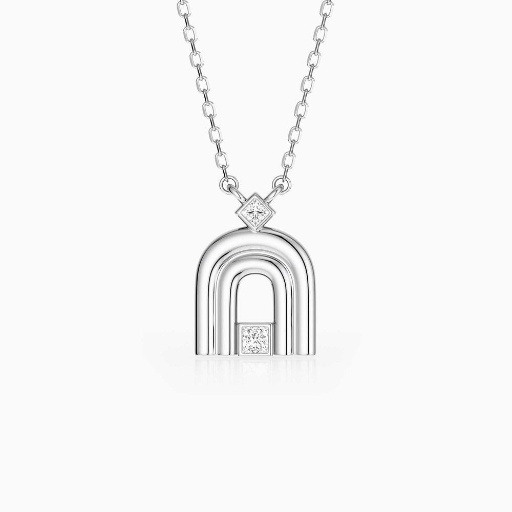 Inspired by the ancient symbol of the Holy Door, this minimalist pendant captures the essence of renewal in its purest form. The sculpted doorway silhouette represents a passage into new beginnings, while the square-cut stone at the base symbolizes the light that meets you as you step forward.