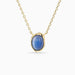 This fluid design centers a tranquil blue agate in a softly sculpted gold frame—an organic silhouette that feels both grounded and free. Like water shaped by time, the pendant flows with quiet grace, capturing a moment of inner clarity.
