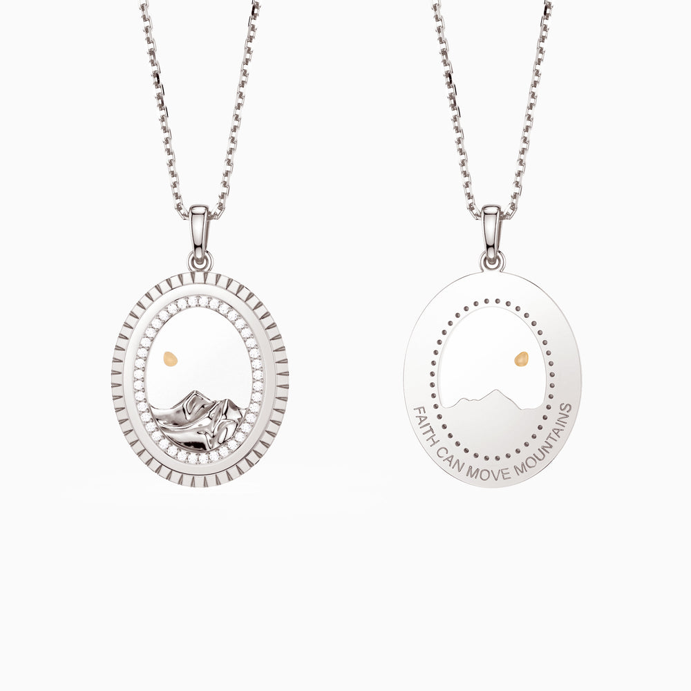 On the reverse side, the engraving "Faith can move mountains" serves as a daily reminder of the immense strength that comes from even the smallest amount of faith.