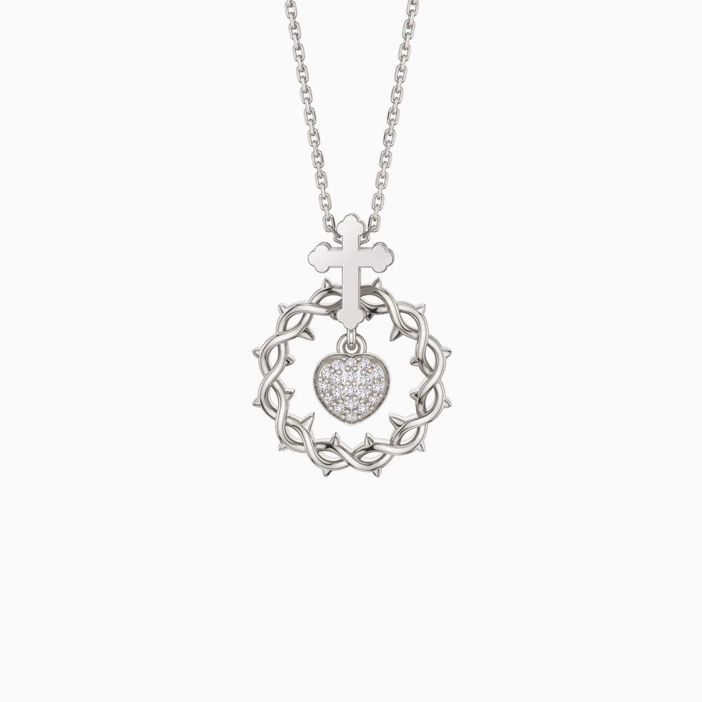 The Sacred Heart Dangle Pendant Necklace captures the essence of divine love and protection, making it a profound piece for those who hold their faith close to their heart. This elegantly crafted necklace features a dainty, dangling heart set within crown of thorns, symbolizing the sacrifices of love and the trials of faith, reflecting a powerful Christian narrative.