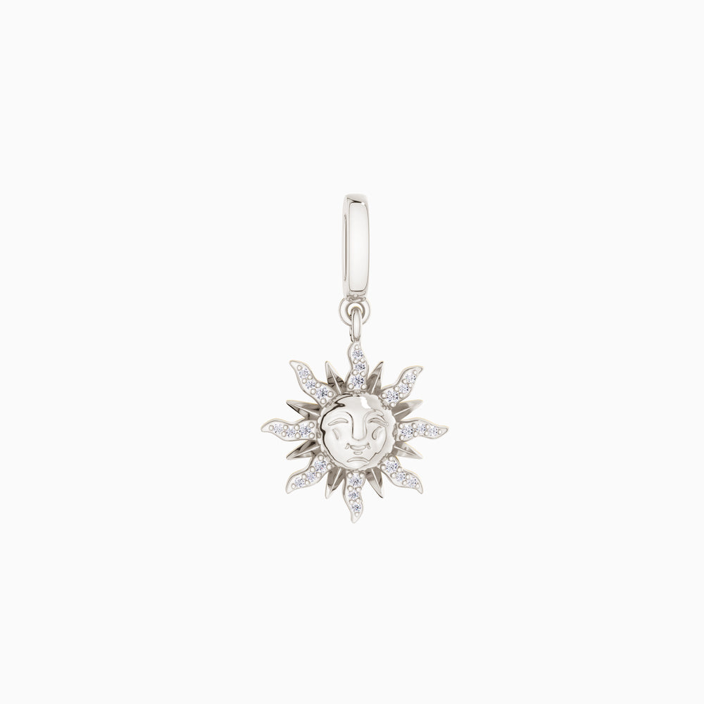 Radiate positivity and warmth with the Sun Charm Pendant. This charming design features a serene, smiling sun face surrounded by glimmering rays adorned with sparkling stones, symbolizing joy, light, and optimism. The golden finish enhances its luminous appeal, making it a standout piece in any collection.