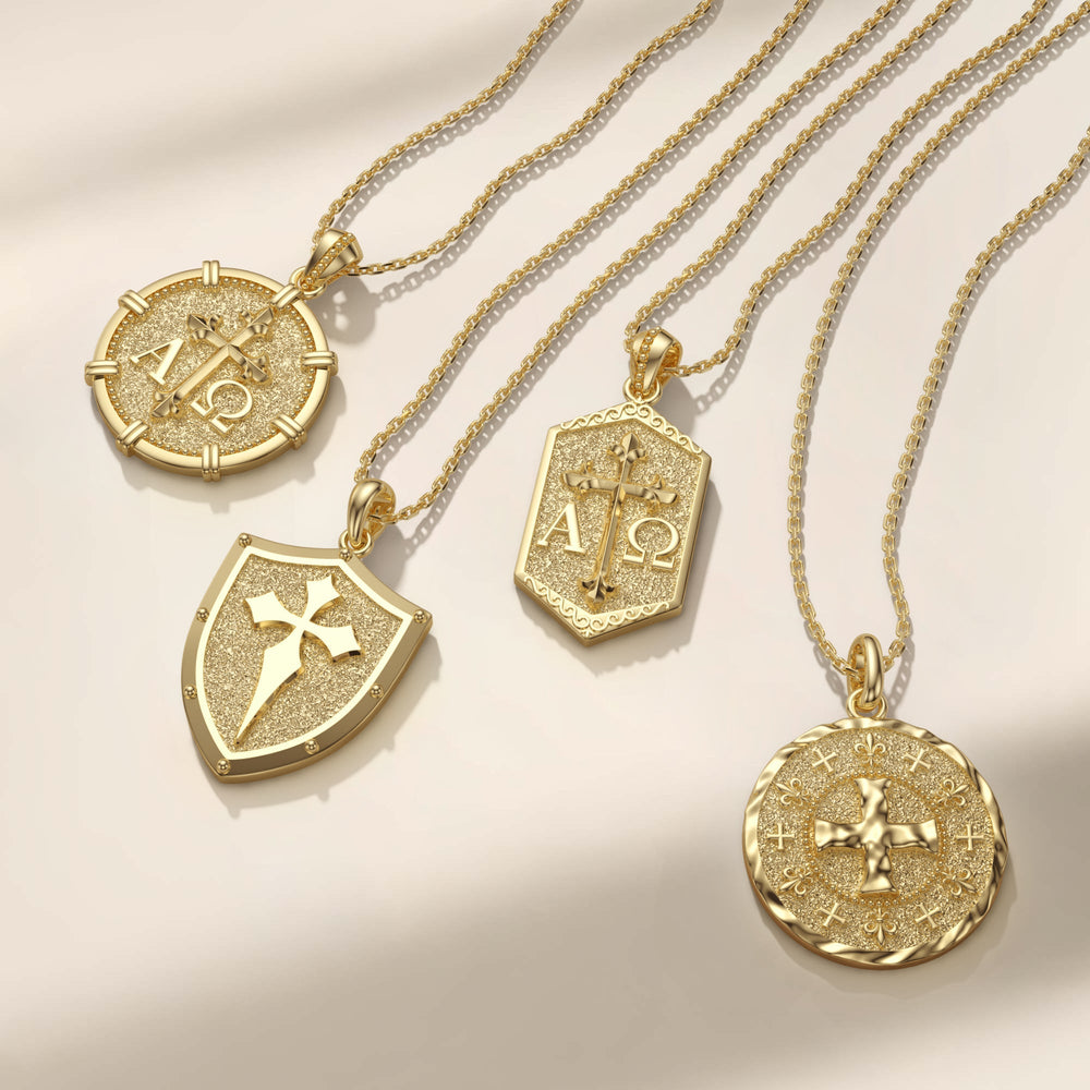 With its dual-sided design, "The Guardian Shield Cross Protection Pendant Medallion Necklace" serves both as a declaration of faith and a promise of divine guardianship, offering comfort and inspiration throughout the wearer's daily walk.