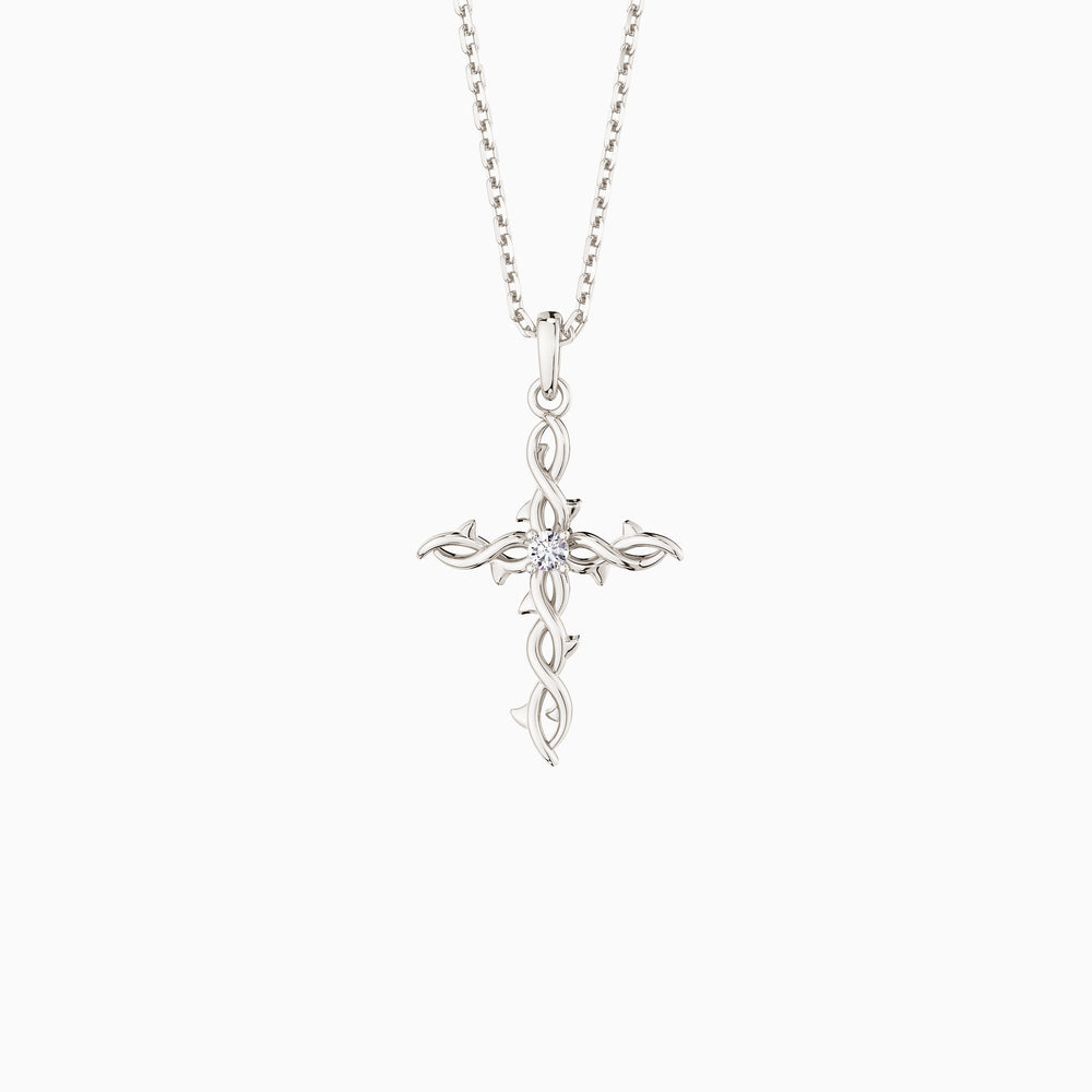 Inspired by the enduring symbolism of the Crown of Thorns, this Thorned Grace Cross Pendant Necklace captures the spirit of resilience and grace. Crafted in gold-plated sterling silver, the design features intricately interwoven thorns, forming a cross that speaks to the strength found in faith. At the center, a radiant stone adds a touch of light, symbolizing hope amidst life’s challenges. Elegant and meaningful, this piece serves as a wearable reminder of perseverance and spiritual fortitude, perfect for those who cherish the power of faith in their lives.