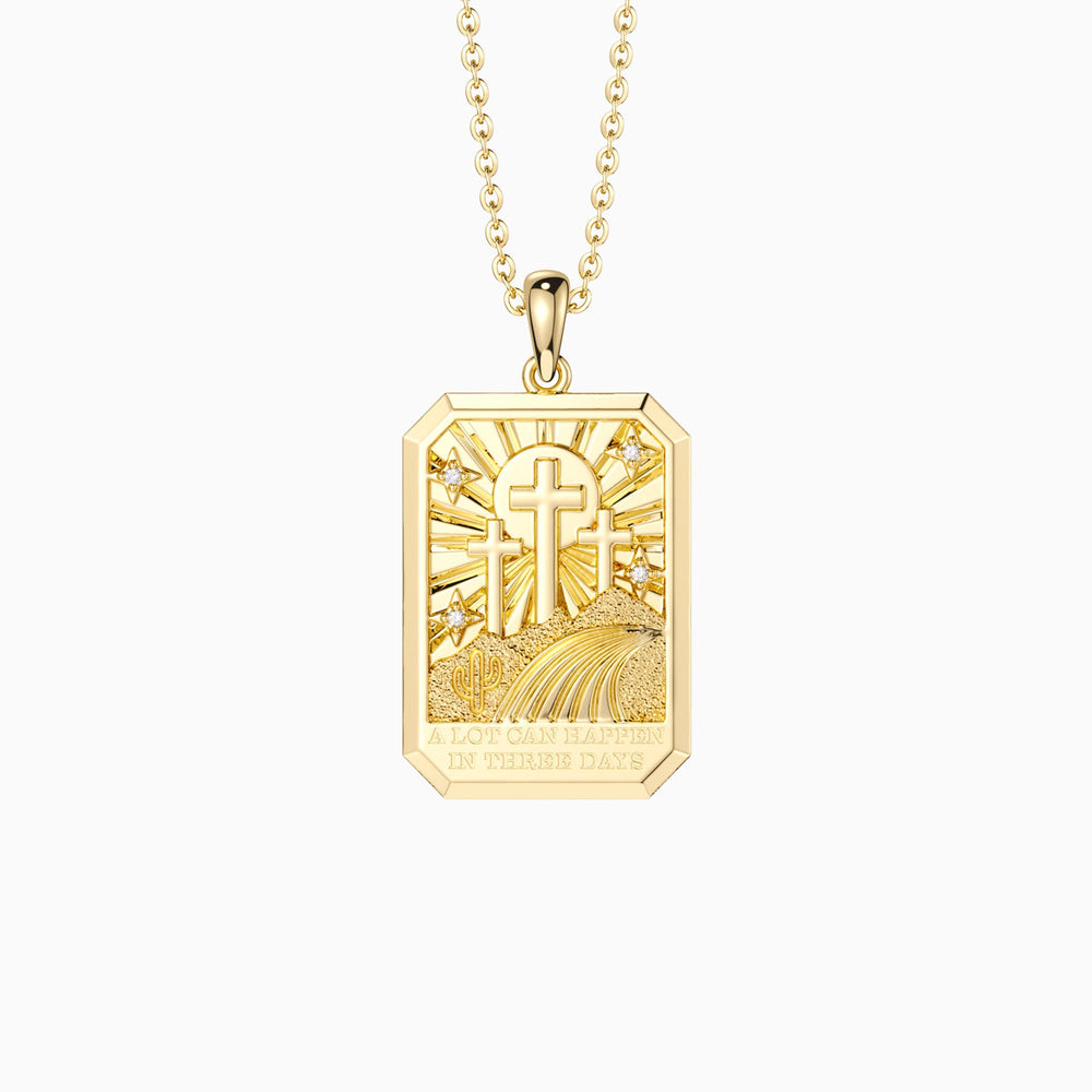 Engraved with the thought-provoking message, "A lot can happen in three days," this pendant is a reminder of the pivotal moments that can change the course of history—or a life. It's a call to reflection, hope, and the enduring belief that after periods of challenge come times of great triumph.