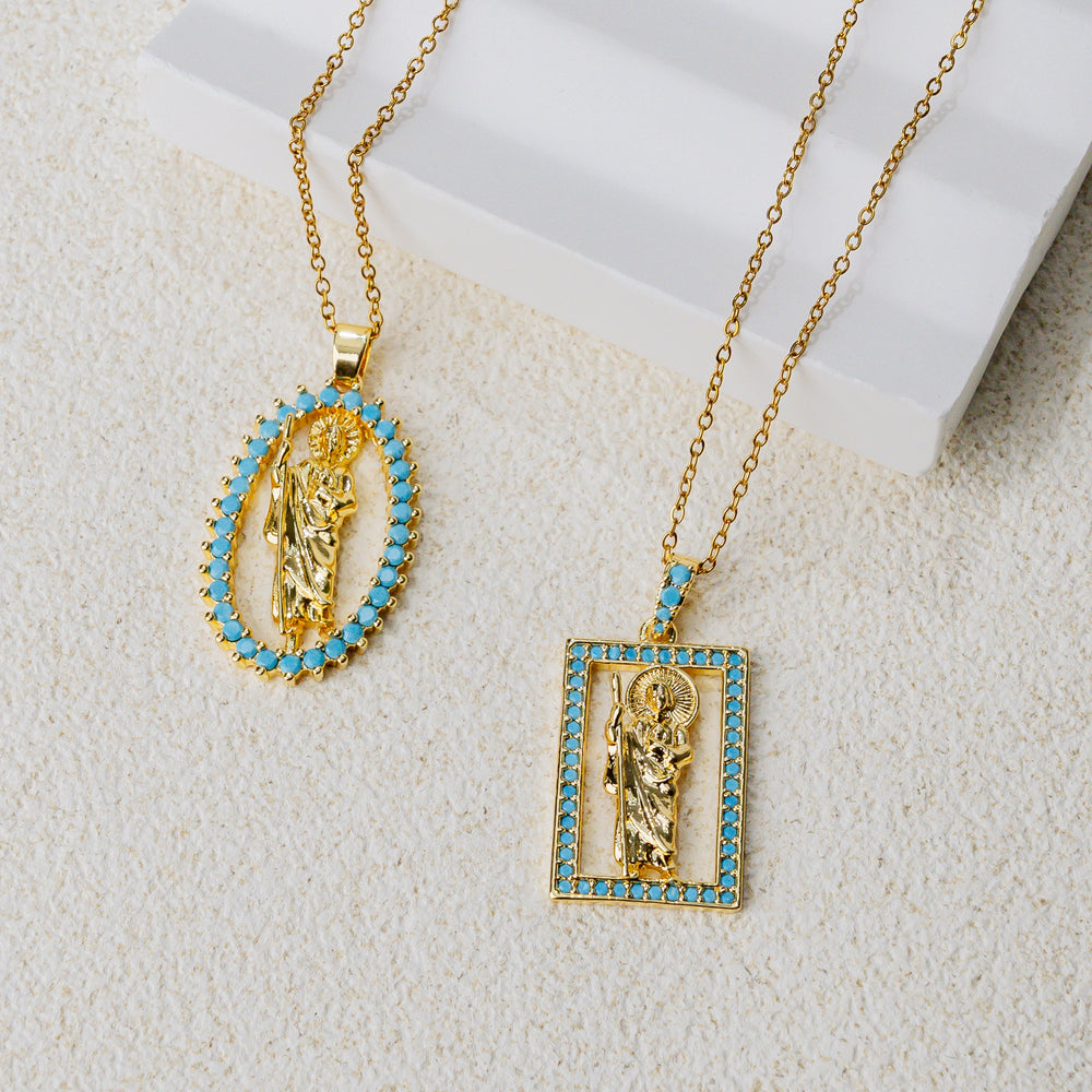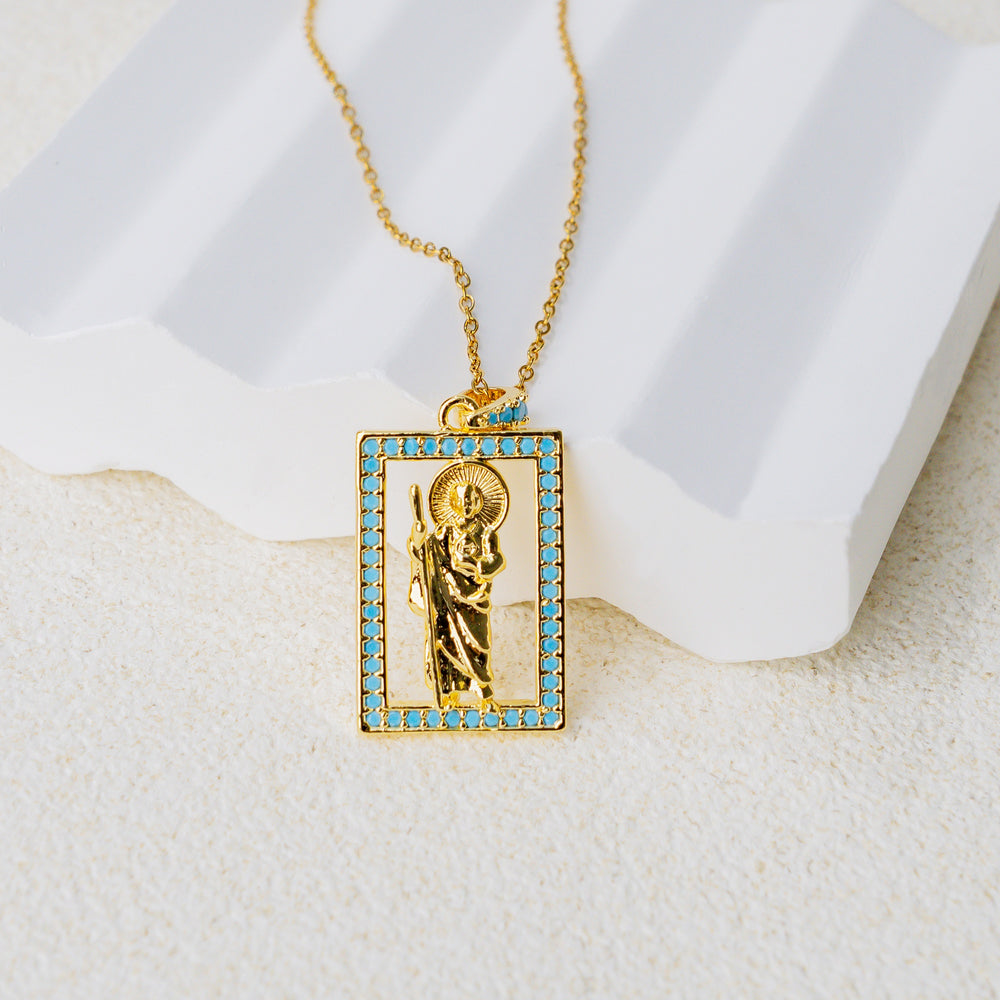 Inspired by sacred icons, the Turquoise Saint Pendant Necklace blends timeless devotion with refined elegance.